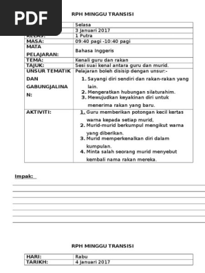 Contoh Penulisan Rph Minggu Transisi Pdf